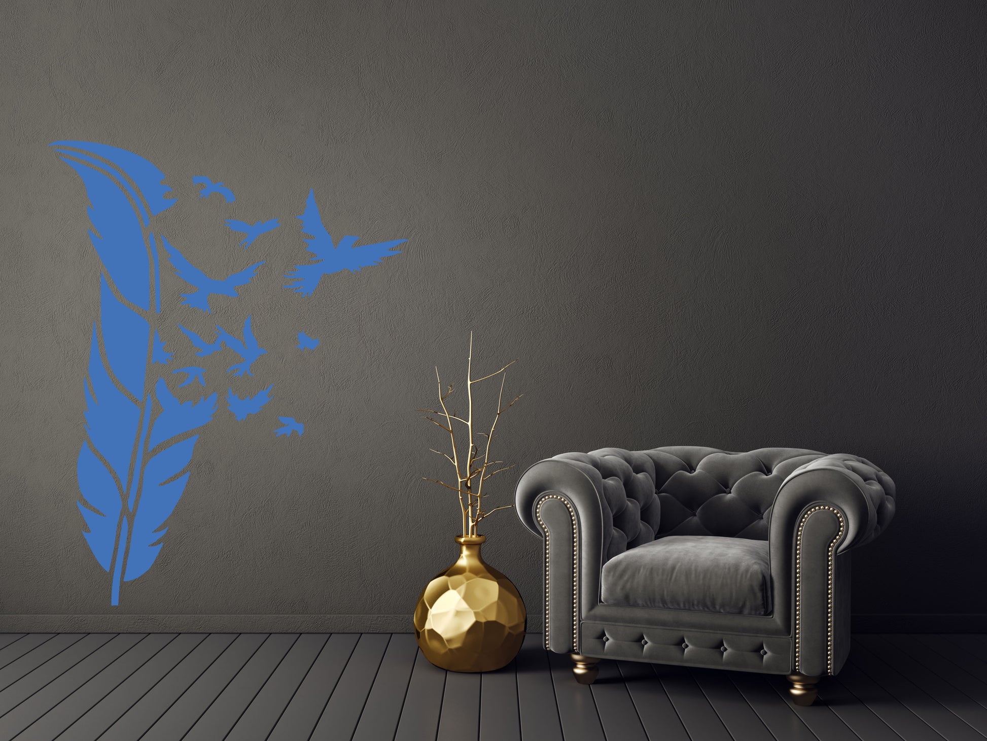 Introduce timeless elegance to your space with this meticulously designed feather and birds vinyl decal. Engineered with a smooth matte finish, this self-adhesive application adheres seamlessly to walls whilst remaining completely removable, preserving your surfaces and offering design flexibility.